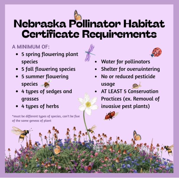 According to the UNL Extension program, the purpose of having the habitat certification program “is to return as much available space as possible to the historical native prairie that local and migratory pollinators evolved with over millions of years.”